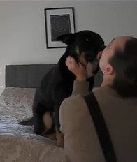 The clip, featuring footage captured by a pet camera, shows a dog peacefully snoozing on a bed. However, as soon as the canine hears rumbling on the door and realizes that his owners are back home from work, the excitement completely takes him over.
